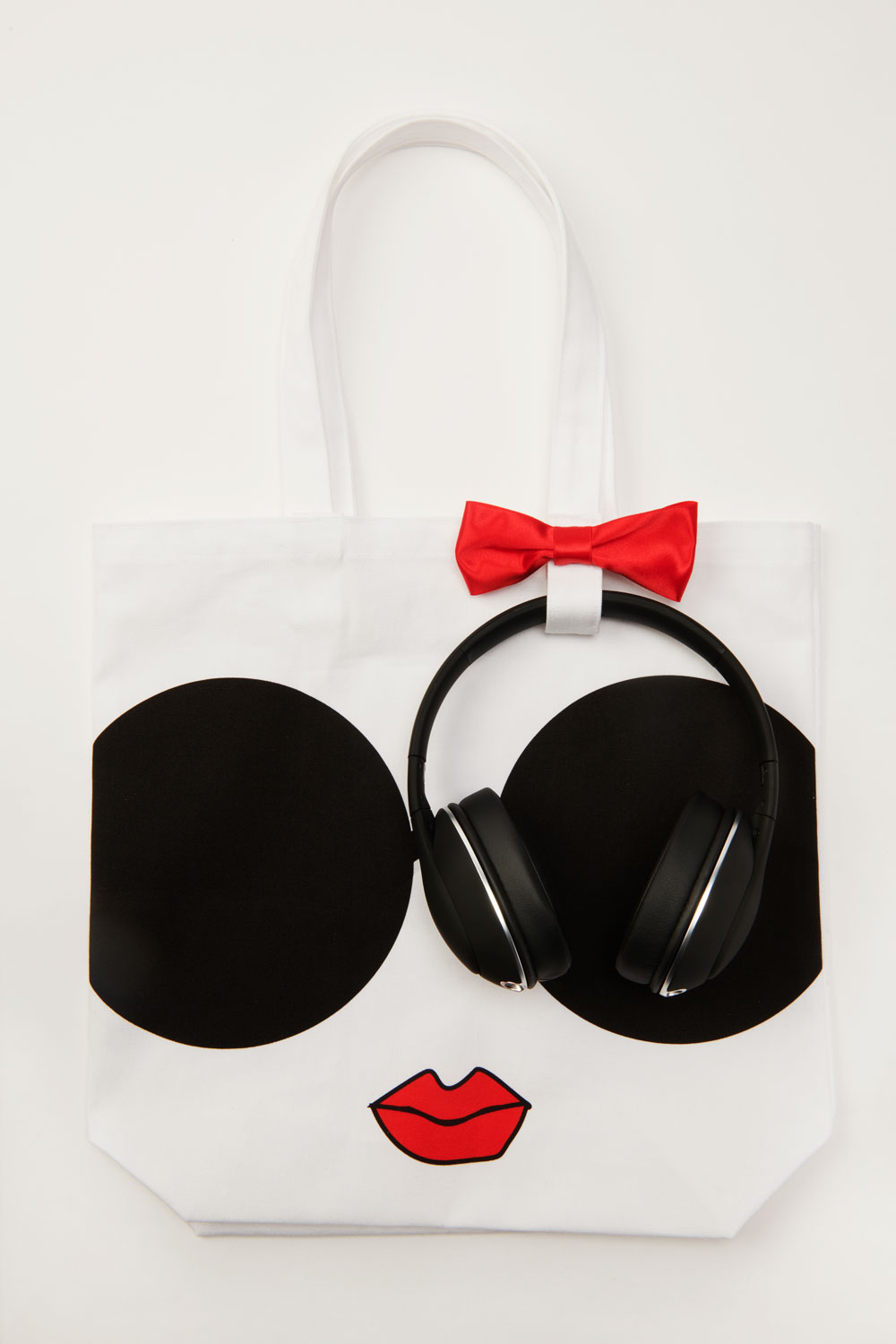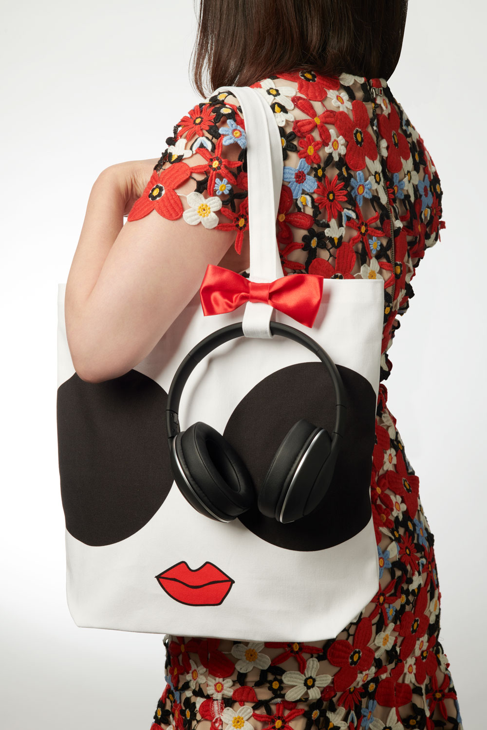 このヘッドフォンのために、ニューヨーク出身でファッションデザイナーのステイシー・ベンデットによるファッションブランド”Alice + Olivia”が、トートバッグとイヤホンジャックアクセサリーをデザイン。