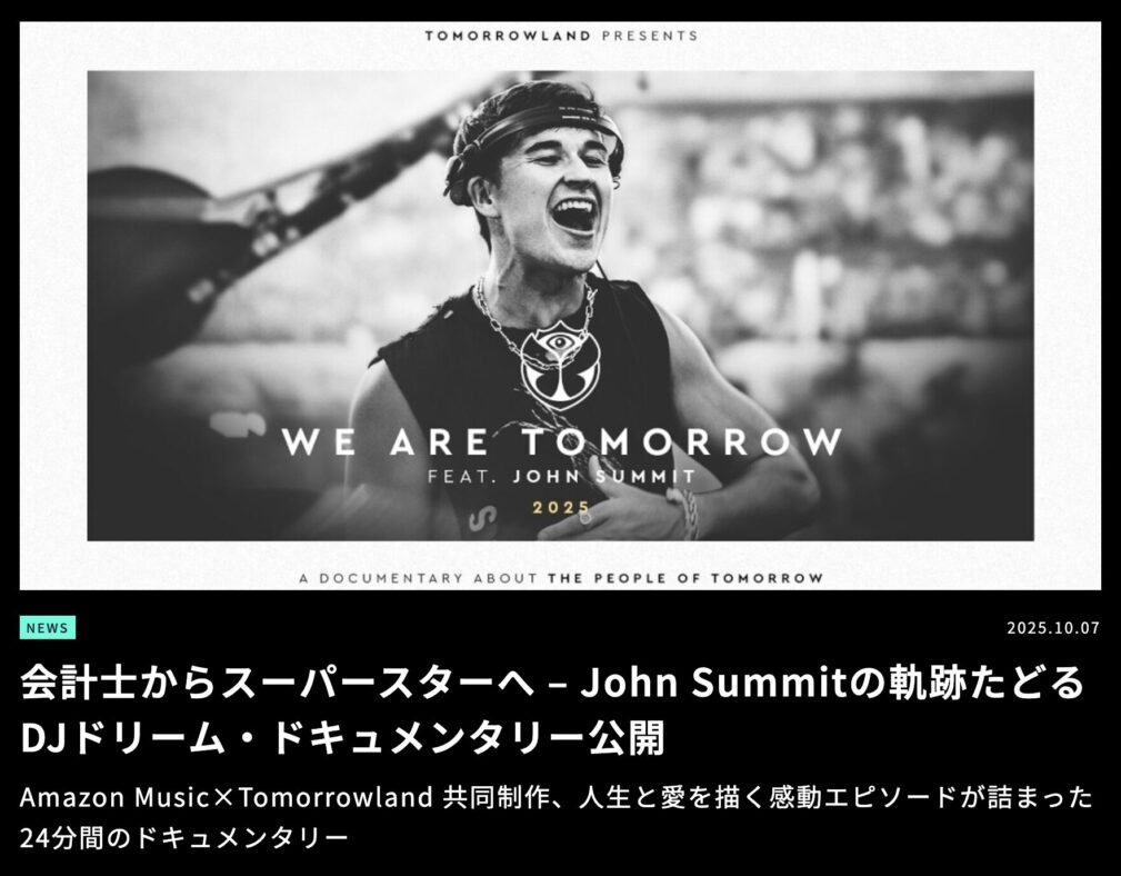 さらに今月には、John Summit をフィーチャーしたドキュメンタリーシリーズ「We Are Tomorrow 2025」も公開され、話題を呼んでいる。