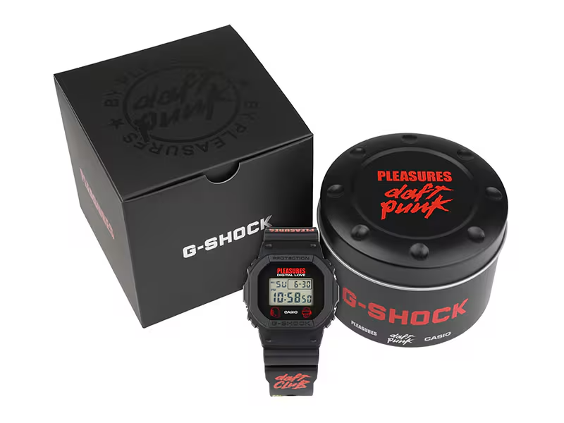 Daft Punk をテーマに、G-SHOCK とロサンゼルス発のブランド・PLEASURESがコラボレーションした限定モデル「DW5600PDP251」が登場。