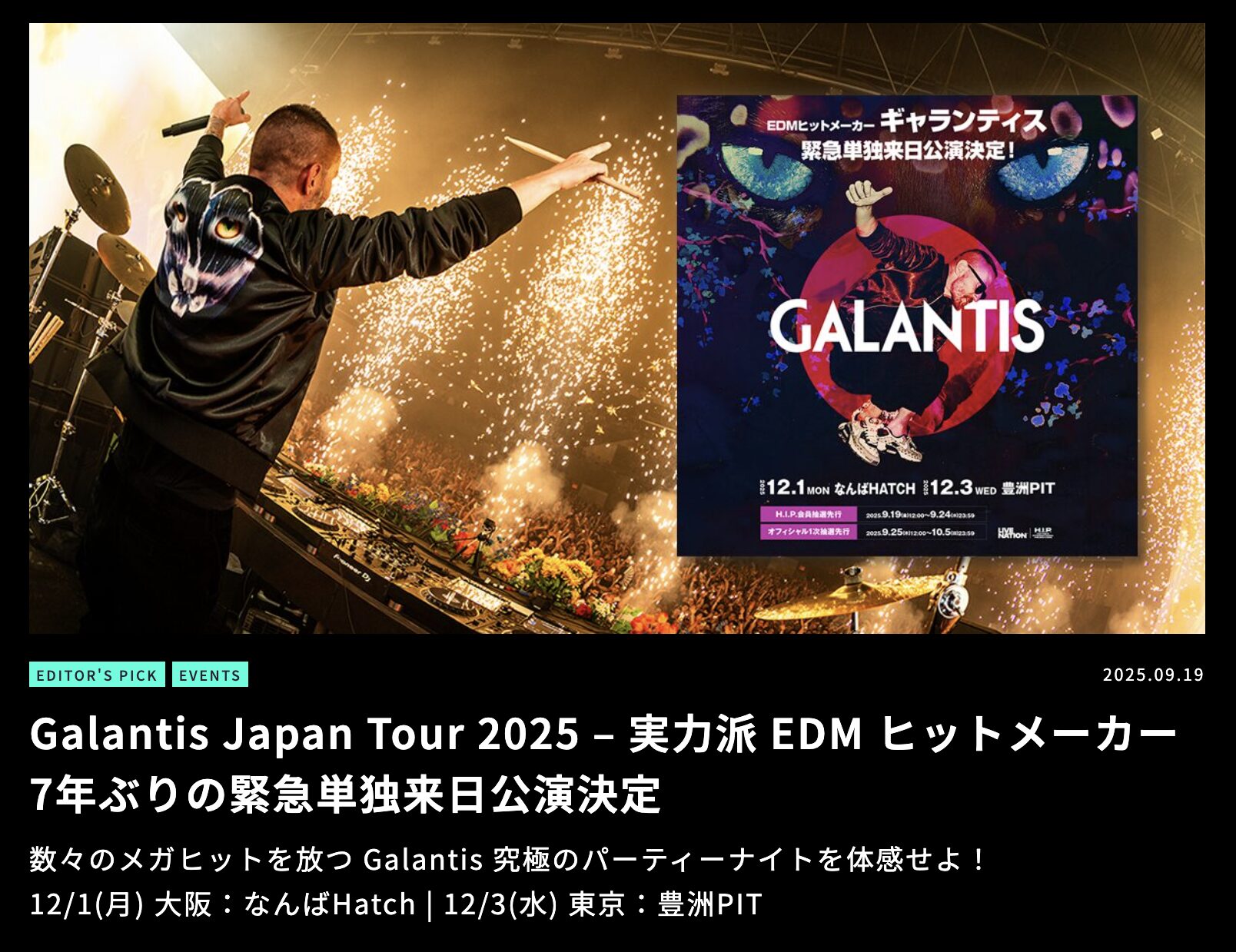 Galantis Japan Tour 2025に新たにEXILE/GENERATIONSのパフォーマーとして活躍し、DJとしても高い評価を得るALAN SHIRAHAMA(白濱亜嵐)の出演が決定!
