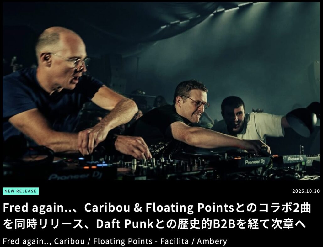 Fred again..、Caribou & Floating Pointsとのコラボ2曲を同時リリース、Daft Punkとの歴史的B2Bを経て次章へ