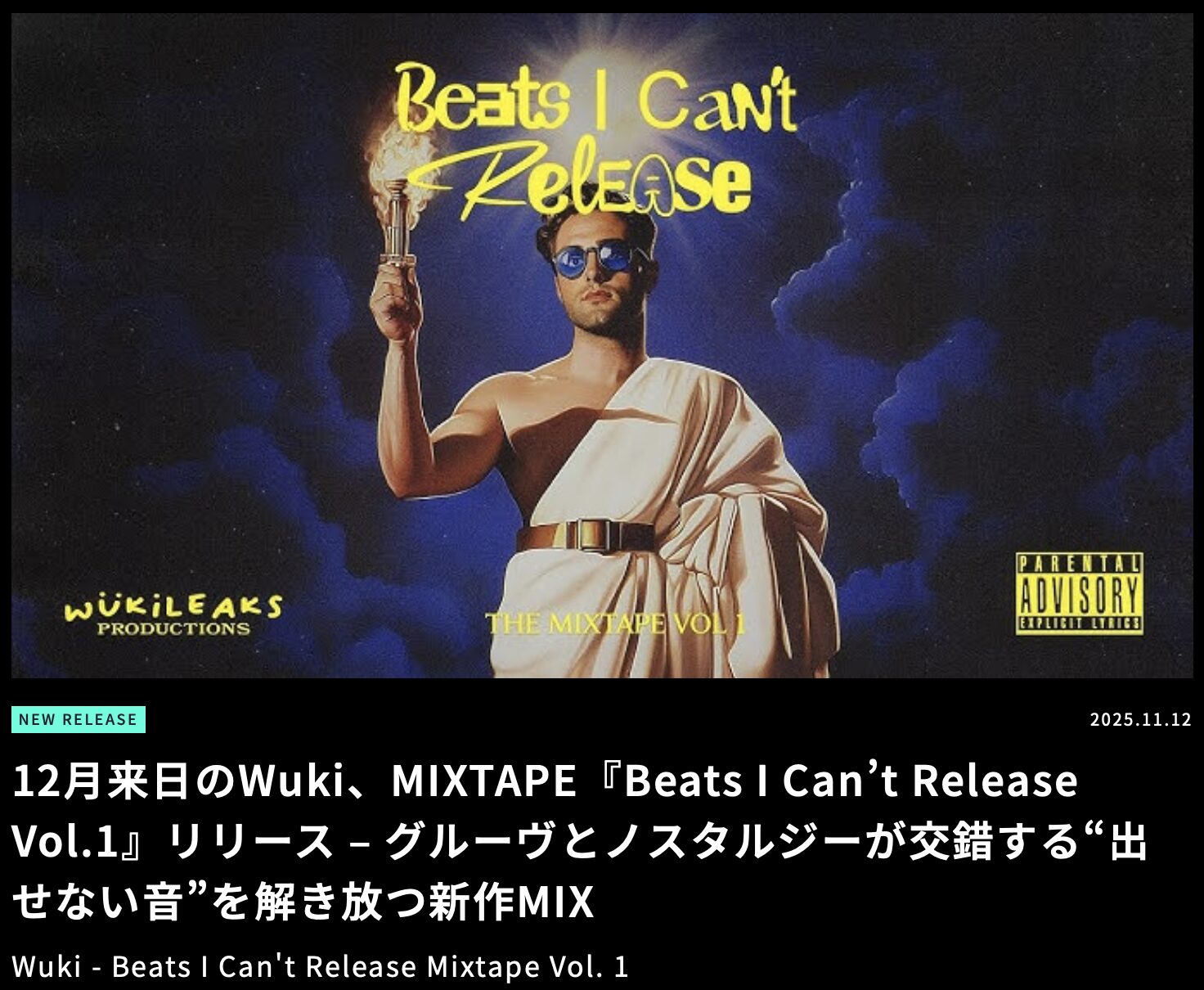 -12月来日のWuki、MIXTAPE『Beats I Can’t Release Vol.1』リリース – グルーヴとノスタルジーが交錯する“出せない音”を解き放つ新作MIX-