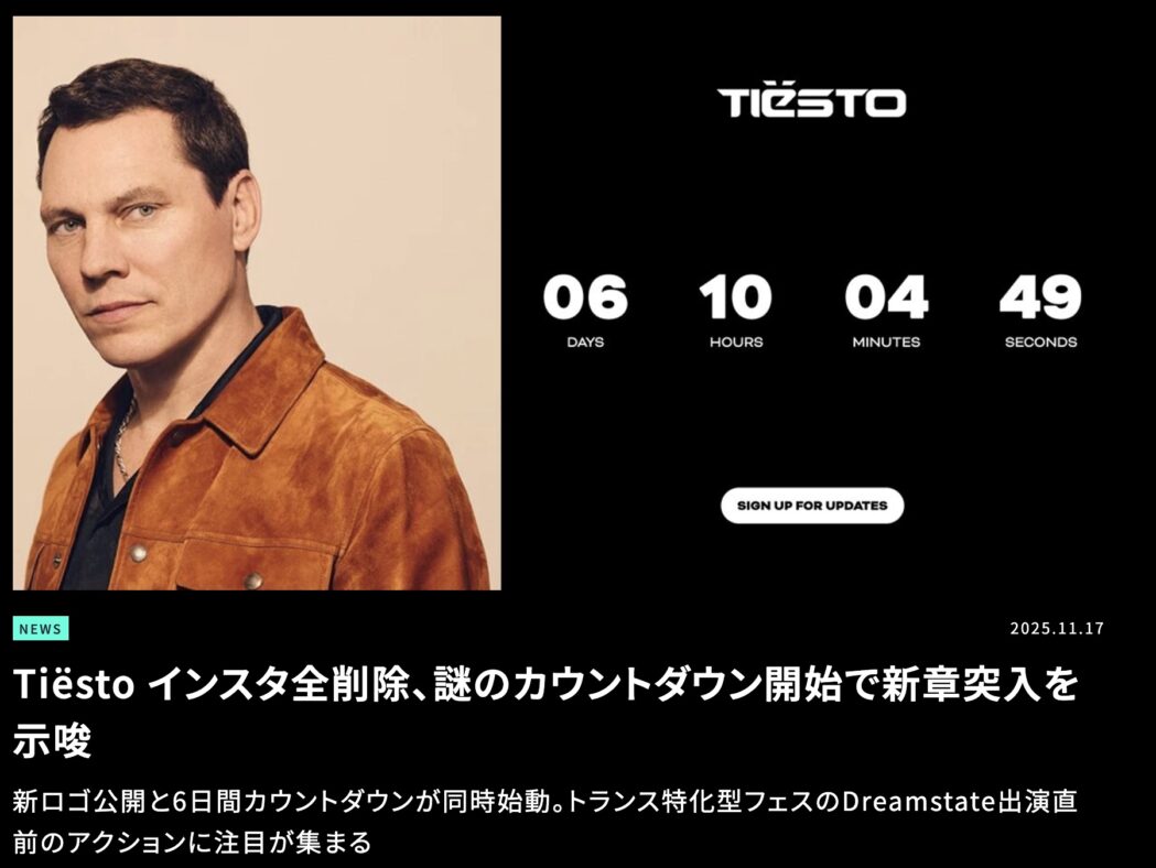 今後、Tiëstoは2026年1月17日と18日に幕張メッセで開催される『GMO SONIC 2026』への出演が決定。