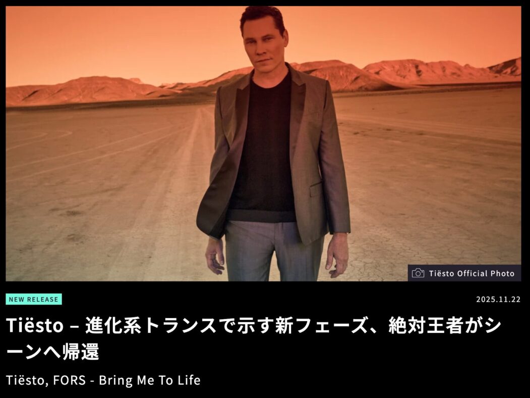 今回公開されたセットでは、エモーショナルな構成でクラシックと新曲をシームレスに展開。FORSとの新曲「Bring Me To Life」、Push「Universal Nation (Tiësto Techrave Mix)」、そしてDelerium「Silence (Tiësto In Search of Sunrise 2025 Remix)」など、近年のトランス楽曲を2025年仕様で再提示した。ラストは、トランス期のTiëstoを象徴する代表曲「Adagio For Strings」で締め括り、会場の熱量が頂点に達した瞬間を捉えている。