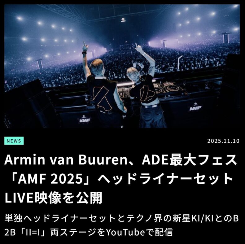 現在、このAMF 2025のライブ映像がYouTubeで順次公開されており、John Summit、Sara Landry、Oliver Heldens、MORTEN、Sub Zero Projectら主要アーティストのフルセットが視聴可能。圧倒的なステージ演出と観客の熱量を自宅でそのまま体感できる内容となっている。