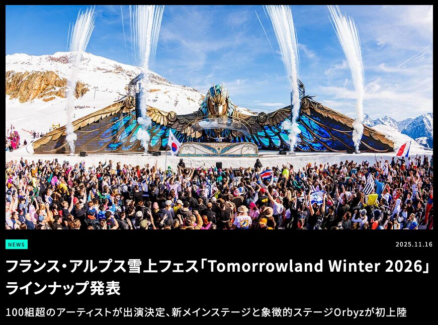 “アルプス × スノー × ダンスミュージック”という唯一無二の体験設計で世界的な注目を集める本フェスは、開催前から世界中のファンや関係者の間でも大きな話題となっている。 EDMMAXXでは、同フェスの特集記事も掲載しているため、過去記事も合わせてチェックしてほしい。