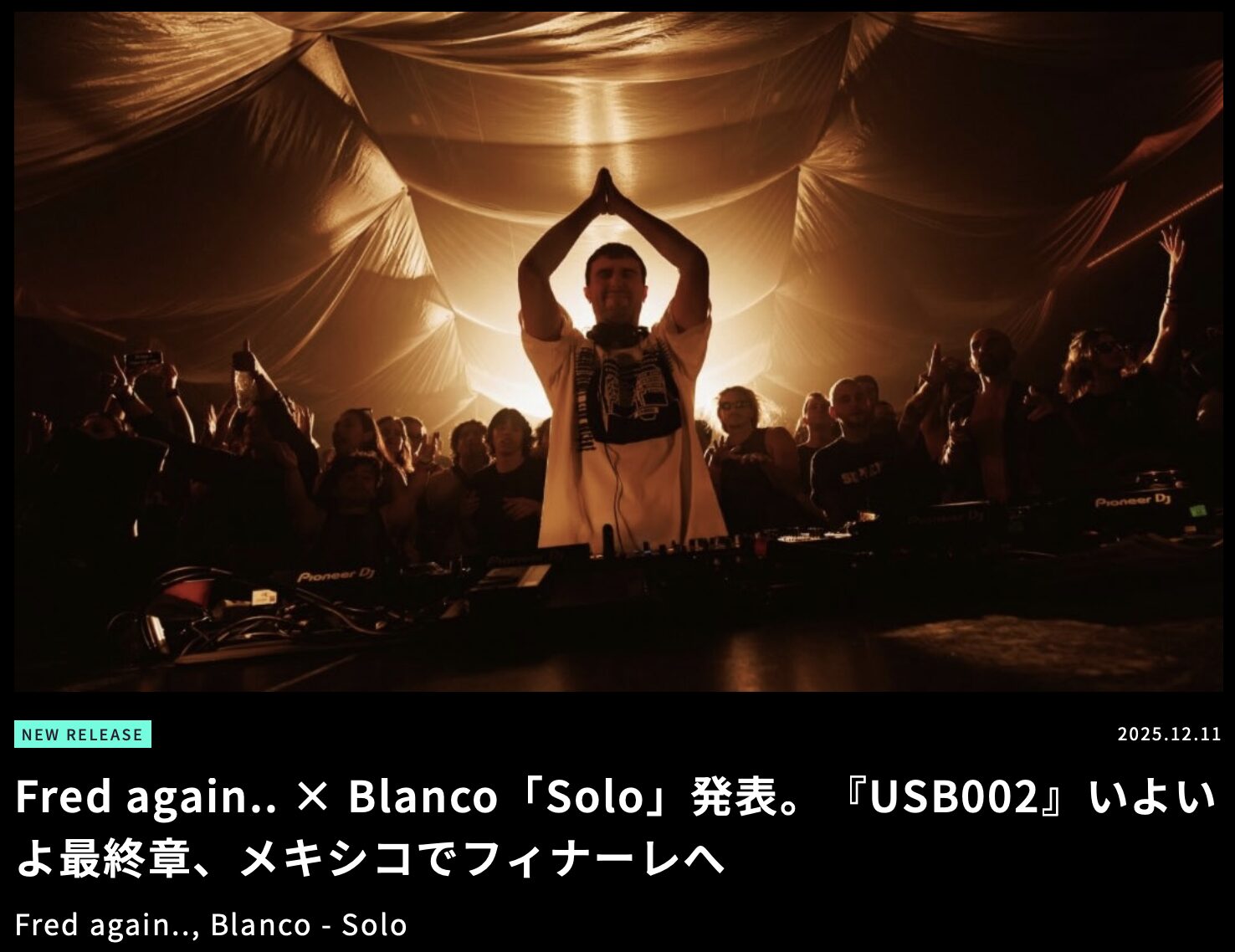 Fred again.. × Blanco「Solo」発表。『USB002』いよいよ最終章、メキシコでフィナーレへ