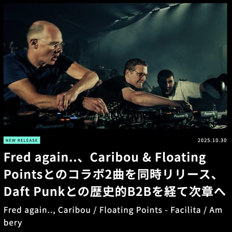 2025年10月、パリで開催されたBecause Musicの20周年イベント「Because Beaubourg」のクロージングに、Daft PunkのThomas Bangalterが突如登場したことも大きな話題となった。Fred again..、Pedro Winter(Busy P)、Erol Alkanと共に、約16年ぶりとなるDJセットを披露。本ニュースの詳細については、以下の記事をチェックしてほしい。
