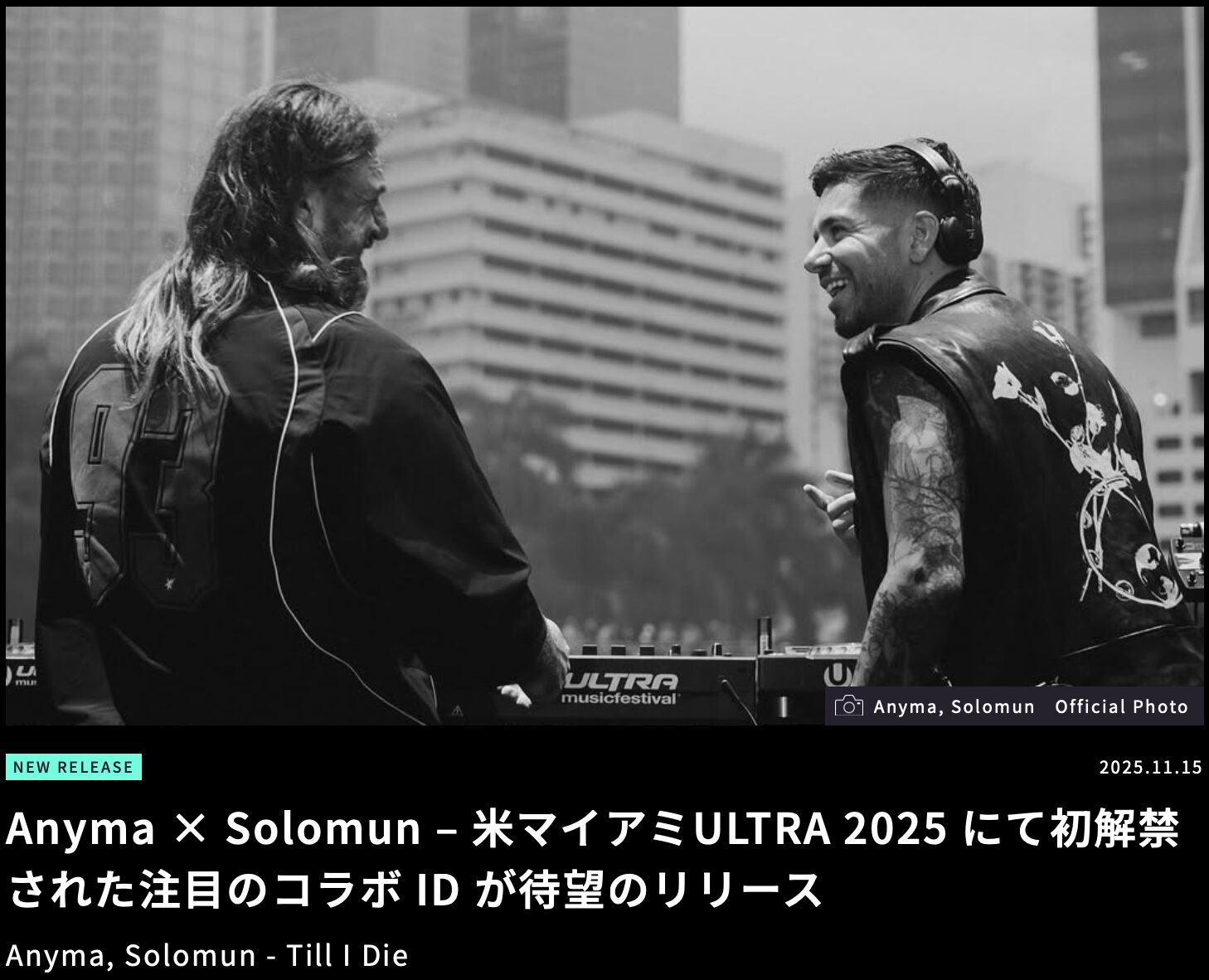 そして、2025年のマイアミで開催されたULTRA MUSIC FESTIVALのメインステージにおけるB2Bセットが大きな話題を呼んだ重鎮、Solomunとの共作で、11月に先行リリースされていた「Till I Die」も本作に収録。ダークでありながら疾走感を備えたサウンドと、反復するボーカルとシンセの交差によって、独自のエモーショナルな感覚を強化させている。