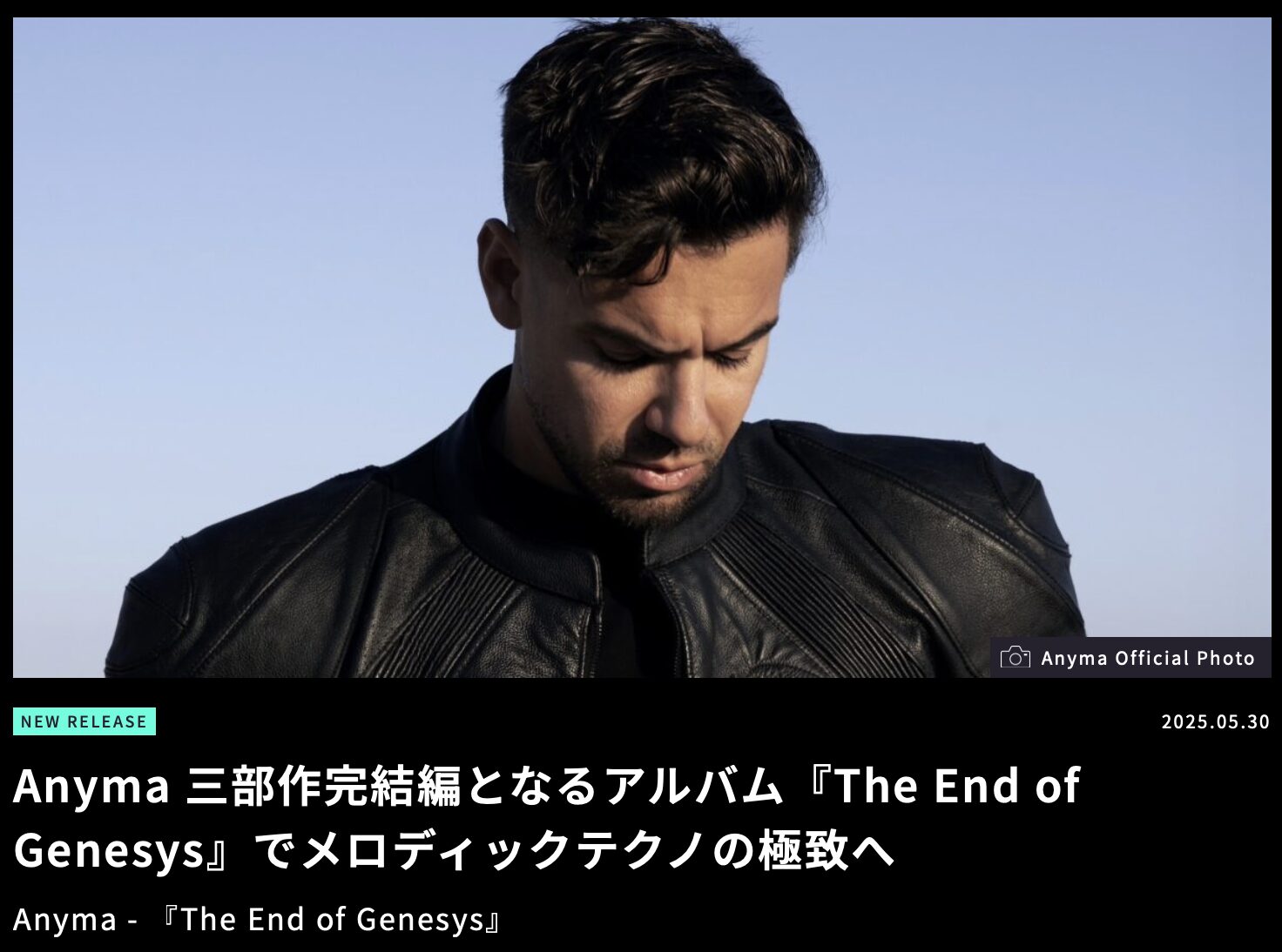 『The End Of Genesys (Deluxe)』は、こうした多彩なコラボレーションを通じて、Anymaというアーティストが「メロディック・テクノの象徴」に留まらず、EDM、テックハウス、さらには体験型ライブへと視野と表現領域を広げていることを明確に示す作品だ。2026年のCoachellaでは、全く新しいライブショー『ÆDEN』を世界初公開する予定となっており、「アートの歴史をクラウドにアップロードする」という壮大なコンセプトのもと、『Genesys』シリーズを超える新たなヴィジュアルとサウンドをどのように提示するのか、期待は高まるばかりだ。