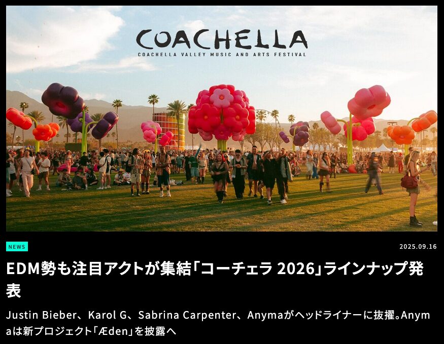 また、EDMMAXXでは『Coachella 2026』のラインナップを特集した記事も公開中。次回開催に向けた動向も含め、あわせてチェックしておきたい。