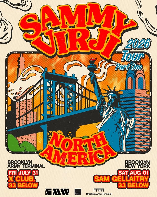 Sammy Virjiが、2026年7月31日・8月1日の2日間にわたり、ニューヨーク・ブルックリンのBrooklyn Army Terminalで2夜連続公演を開催発表。