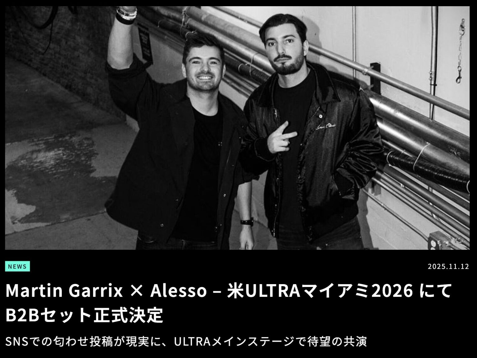 今後は2026年3月27日〜29日にマイアミ・Bayfront Parkで開催されるUltra Music Festival 2026で、Martin GarrixとのB2B出演を控える。